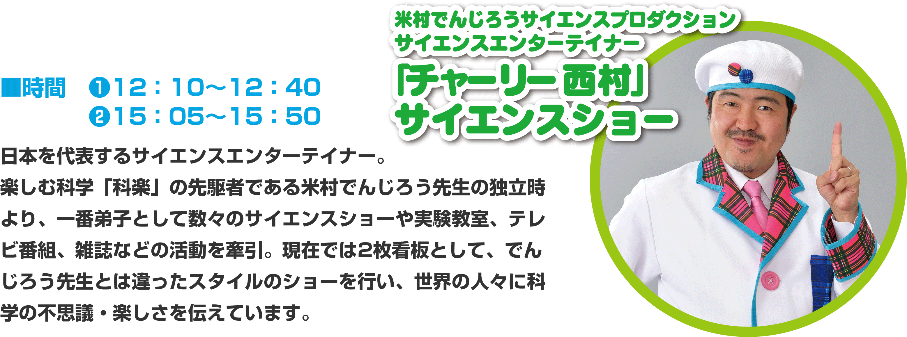 | 時間 | 要事前予約(予約ボタンから予約できます) ①10:30〜 ②12:00〜 ③13:00〜 ※以下の回は本サイトでは予約できません。 13:00参加券配布 ④14:30〜 ⑤16:30〜 |